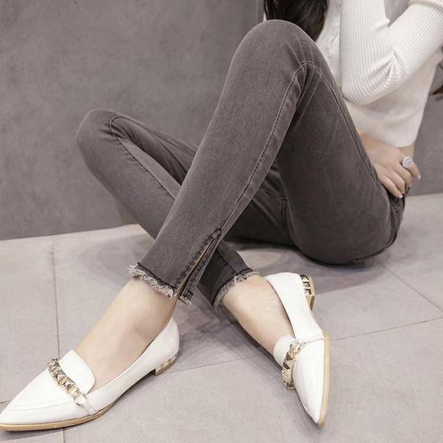 2018春秋新款韩版新款弹力修身毛边小脚牛仔长裤女装