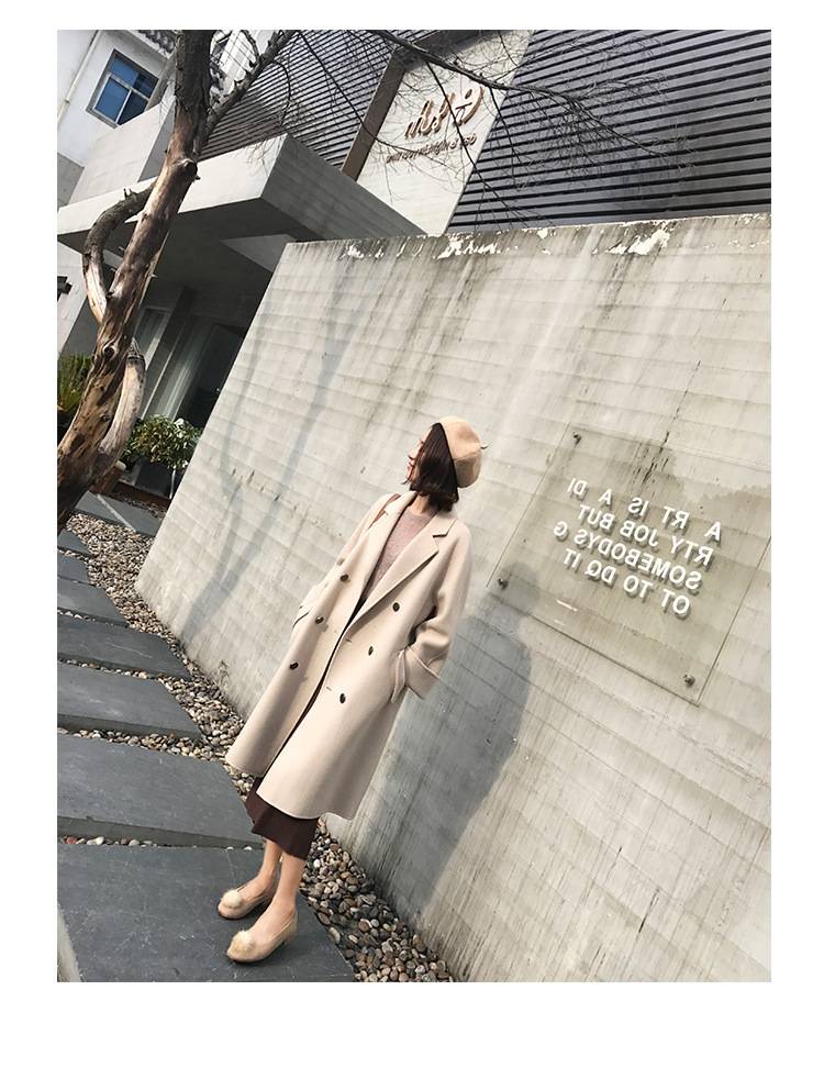 2018秋冬新款毛呢外套女中长款韩版小矮个子手工双面羊绒呢子大衣