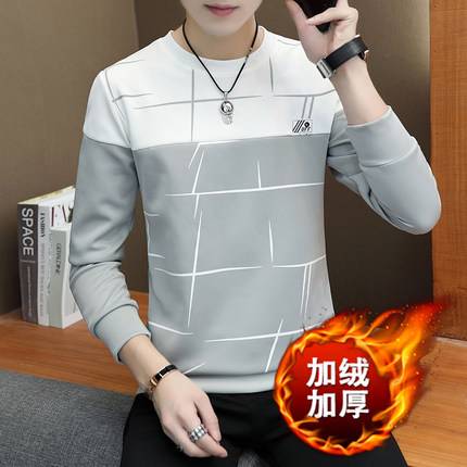 秋装男士长袖t恤冬季潮上衣打底衫男装加绒加厚卫衣男保暖秋衣服