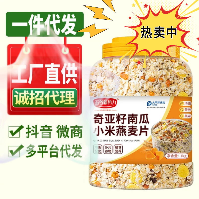 奇亚籽南瓜小米燕麦片即食冲饮多谷物杂粮早餐无糖饱腹感代餐食品