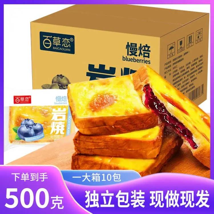 岩烧蓝莓味夹心吐司面包休闲零食独立包装早餐代餐新糕点工厂