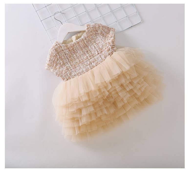 显瘦连衣裙 2020夏季新款品牌女装圆领一粒扣网纱a字裙