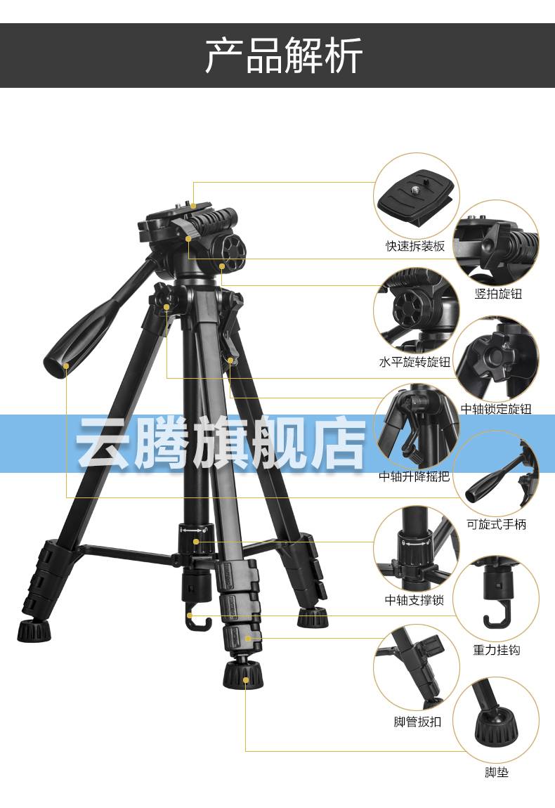 云腾668三角架支架适用佳能尼康索尼微单照相机便携单反三脚架