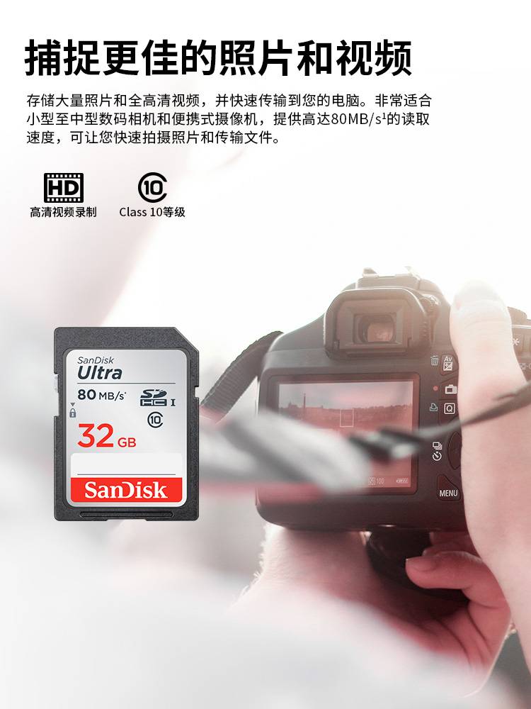 闪迪sd卡32g内存卡 高速数码相机摄像机SDHC大卡class10