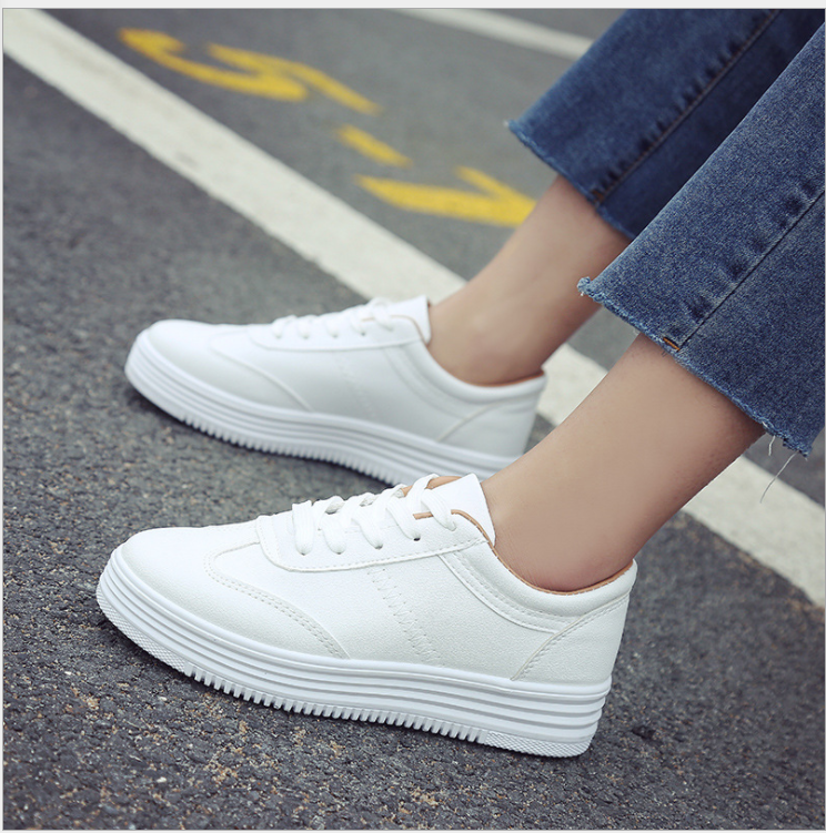 2018新款春秋季厚底小白鞋女韩版系带休闲鞋女纯色皮面松糕鞋女鞋