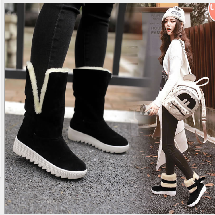 冬季新款时尚两穿雪地靴加厚保暖女短靴百搭学生中筒平底高帮棉鞋