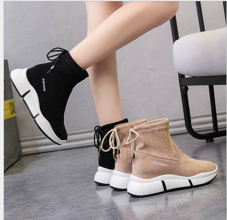促销休闲鞋女2018秋冬季新款高帮鞋韩版绒面厚底松糕鞋加绒靴子女