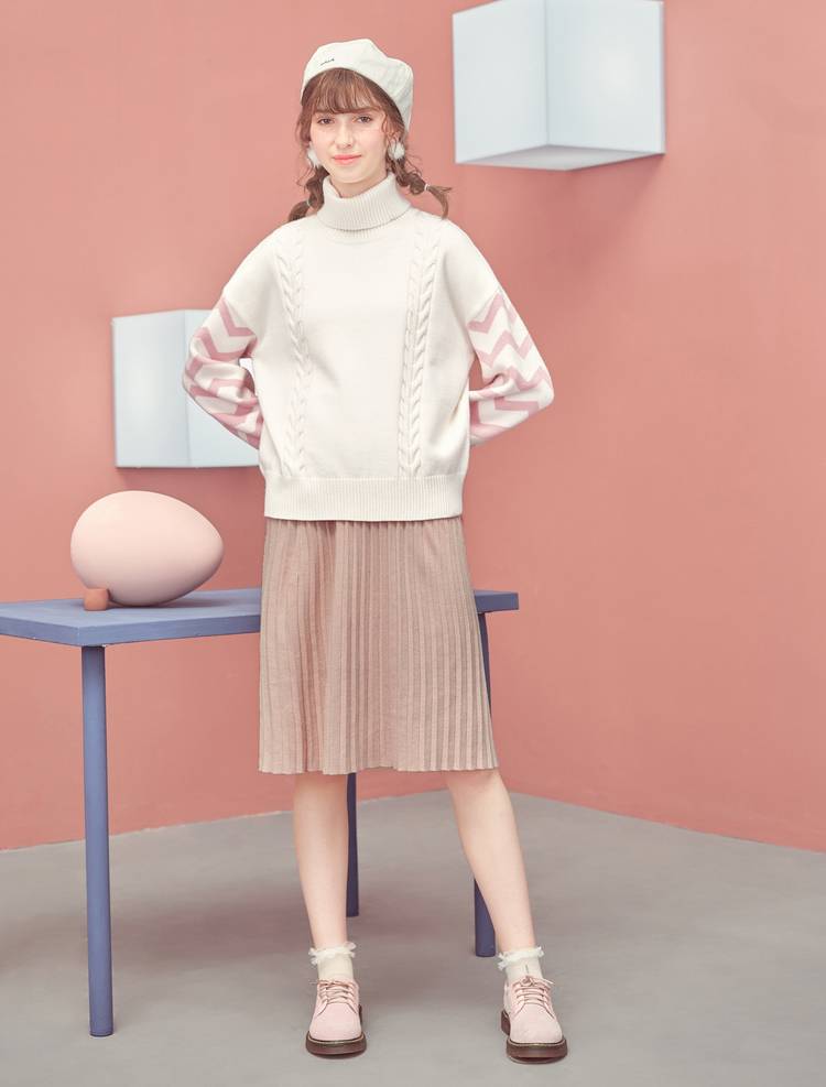 2018秋冬新款韩版女装白色小清新高领泡泡袖上衣毛衣