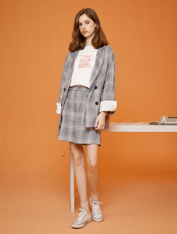 促销 2018秋季新款韩版女装拼接格纹小个子外套西装