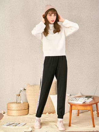 2018秋季新款韩版女装学生宽松运动束脚黑色小脚裤休闲裤