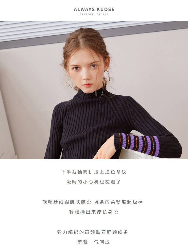 2018秋冬新款韩版高领拼接条纹修身显瘦打底衫针织毛衣