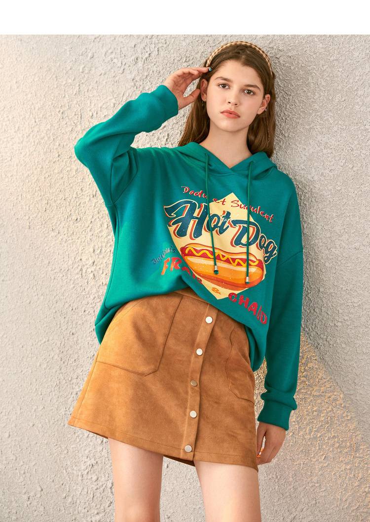 2018秋冬款韩版女装宽松加绒连帽印花外套卫衣