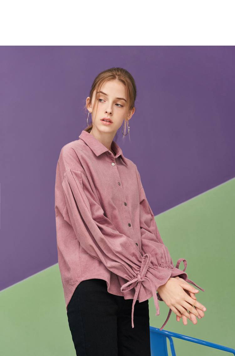 2018秋冬新款修身 显瘦 粉红灯笼袖设计宽松长袖上衣衬衫