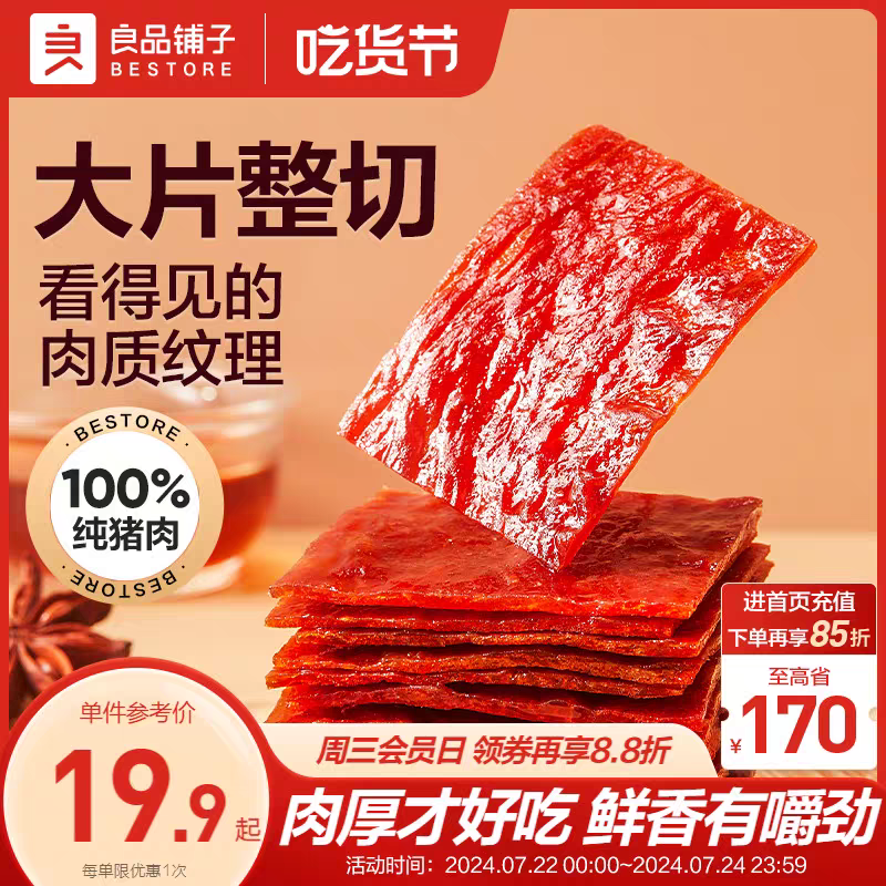 良品铺子猪肉脯200g原切靖江猪肉脯肉干蜜汁味办公室休闲小吃零食