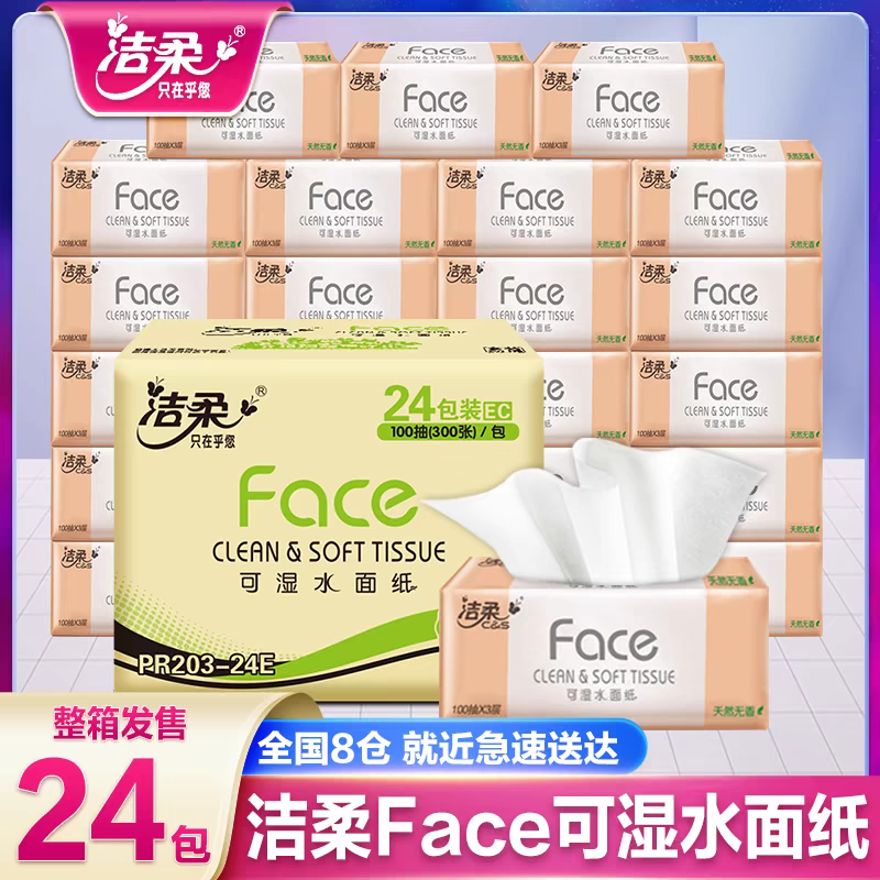 洁柔纸巾抽纸整箱家用实惠装抽取式卫生纸可湿水纸抽餐巾纸面巾纸