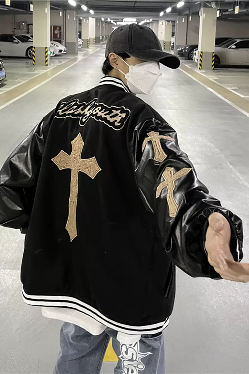 棒球服vibe外套男春秋cityboy高级感ins雅痞夹克宽松pu皮拼色褂子