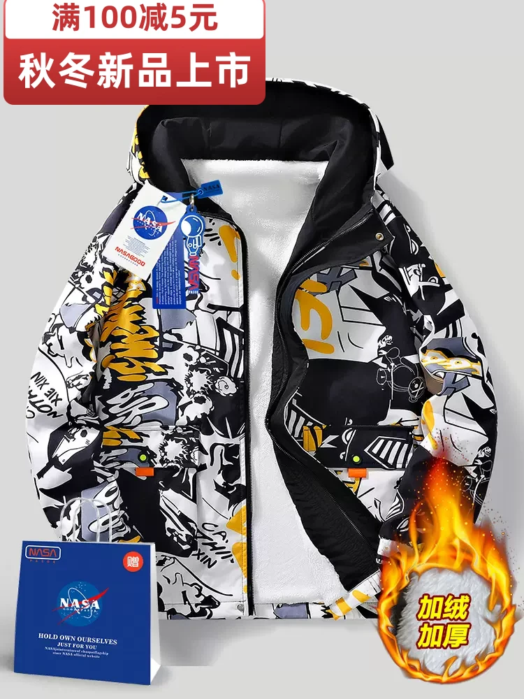 NASA外套男士冬季2022新款男生潮牌学生痞帅夹克加绒工装大码衣服