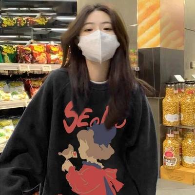 300克华棉复合卫衣女2022秋冬季加绒韩版宽松慵懒风休闲上衣