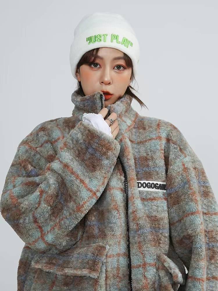 栗馨馨冰淇淋色羊羔绒外套男女情侣外套春秋季冬季长袖宽松夹克