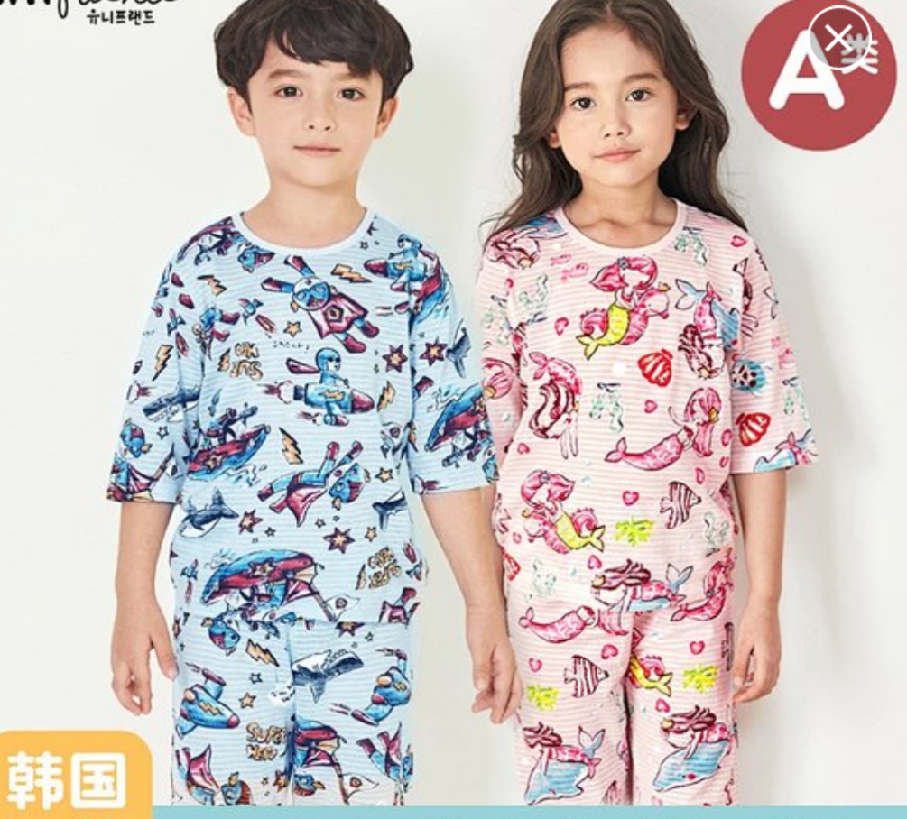 【七分袖竹节棉】【有机棉认证】韩国unifriend春夏新品童装家居服儿童7分袖