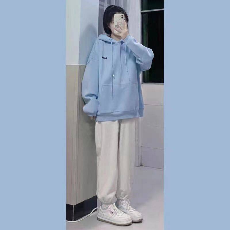 卫衣女宽松连帽新款春秋韩版百搭套头短款卫衣白色上衣外套
