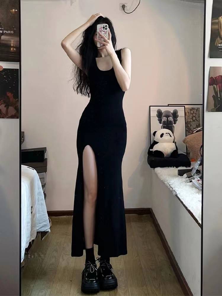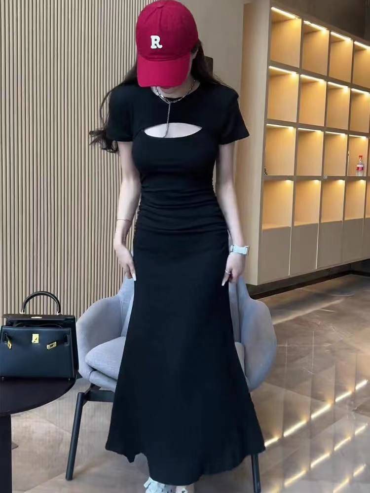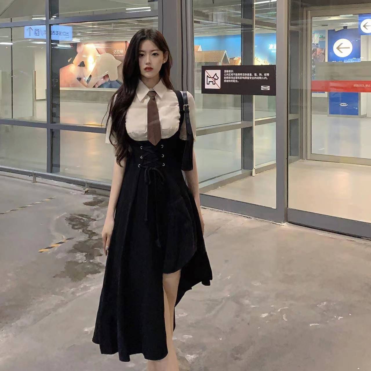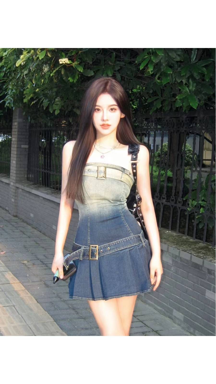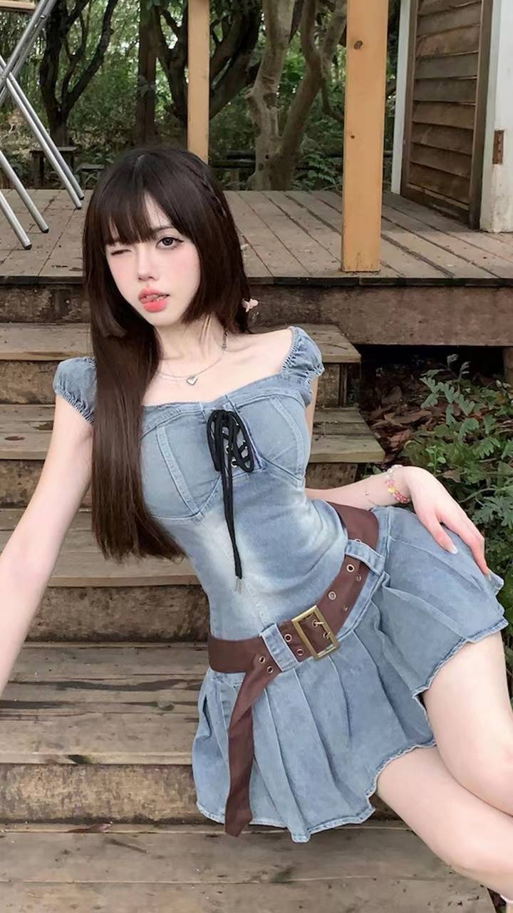韩系小众 复古港味 单排扣 棉麻舒适透气 收腰连衣裙