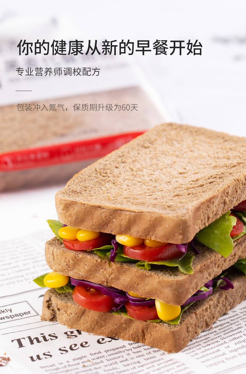 全麦面包早餐吐司切片无糖精无低0黑麦脂肪卡热量零食品宿舍即食