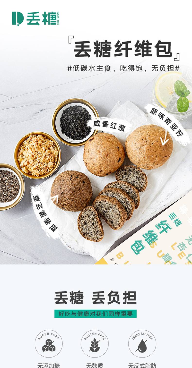 丢糖丑丑包多口味纤维包生酮主食品无添糖低卡代餐无麸质早餐面包