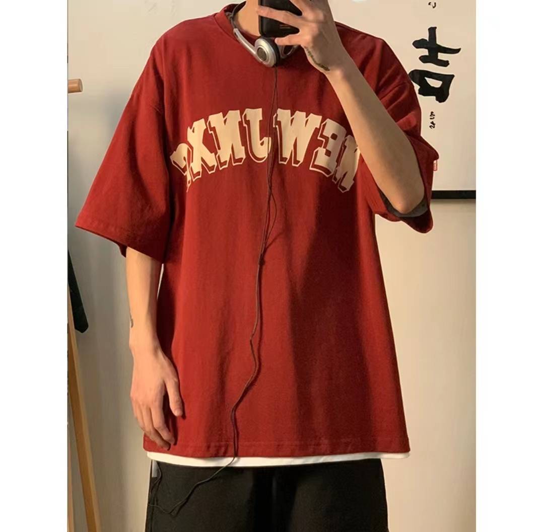 日系夏季重磅300g字母印花短袖