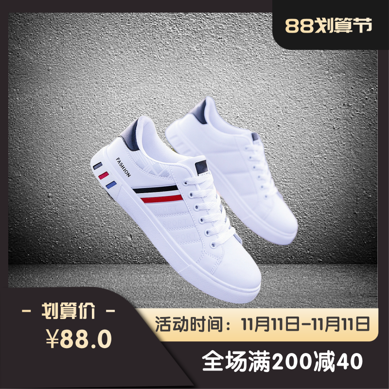 潮牌男鞋厚底小白鞋男真皮韩版百搭休闲鞋白鞋春秋2019新款板鞋男