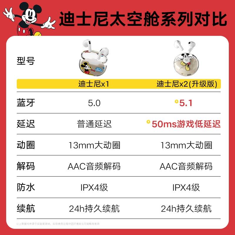 Disney迪士尼小豌豆正版联名奢音2022年新款迷你隐形真无线蓝牙耳机音质超好入耳式女生女士