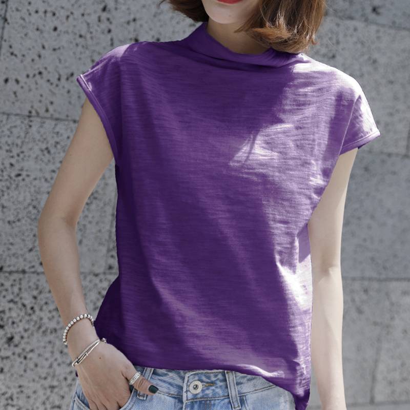 夏季竹节棉宽松短袖t恤女装纯色上衣韩范半袖体恤纯棉高领打底衫