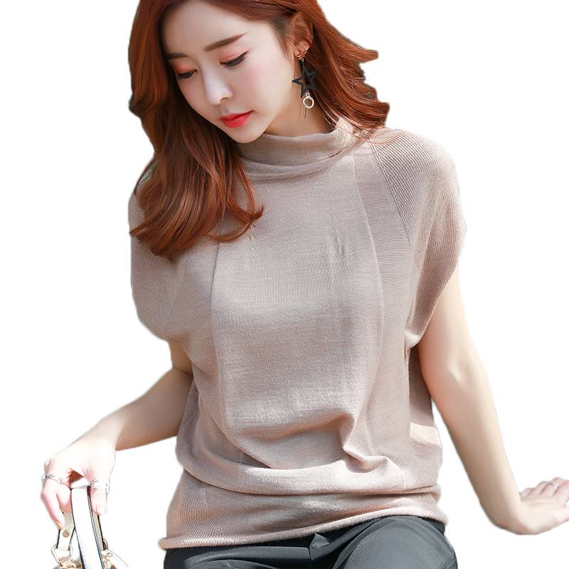 2018秋季新款韩范女装针织高领t恤女短袖宽松上衣半袖加厚打底衫