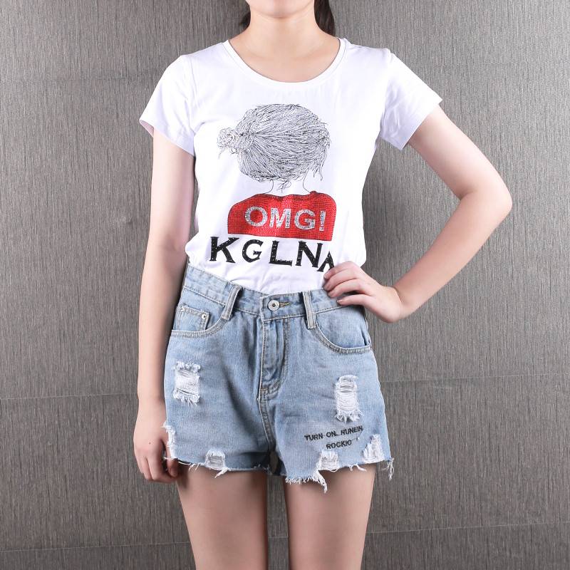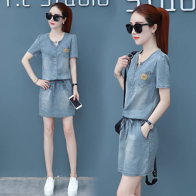 牛仔短裤女装夏新款白色T恤韩版修身洋气时尚学生清新夏季两件套
