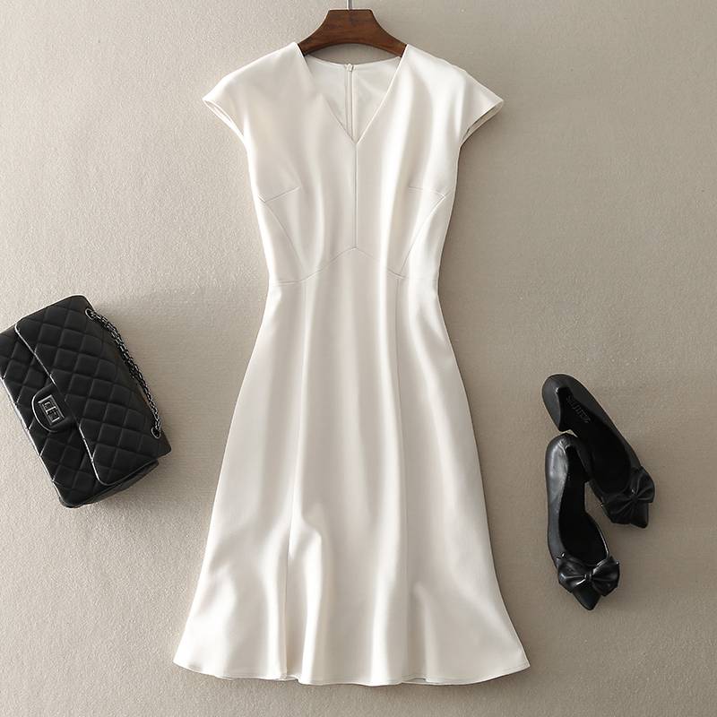 中长款修身无袖连衣裙欧美大牌V领A字裙2018夏季新款气质女装