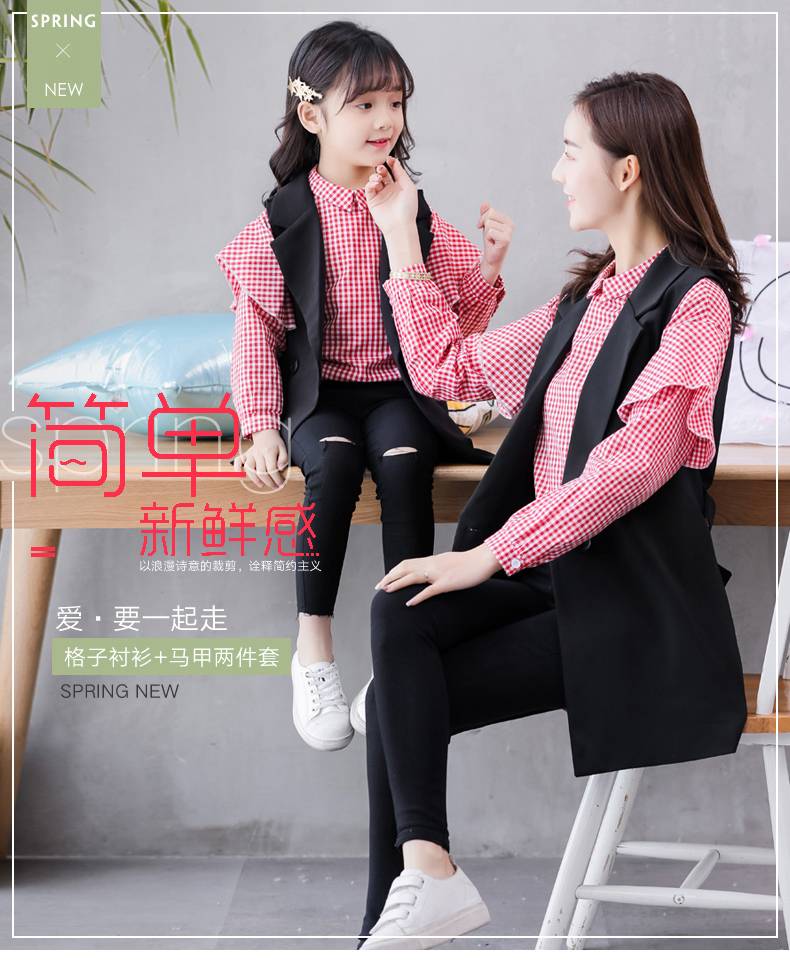 亲子装春装套装2019新款潮一家三口网红抖音洋气母子母女装连衣裙