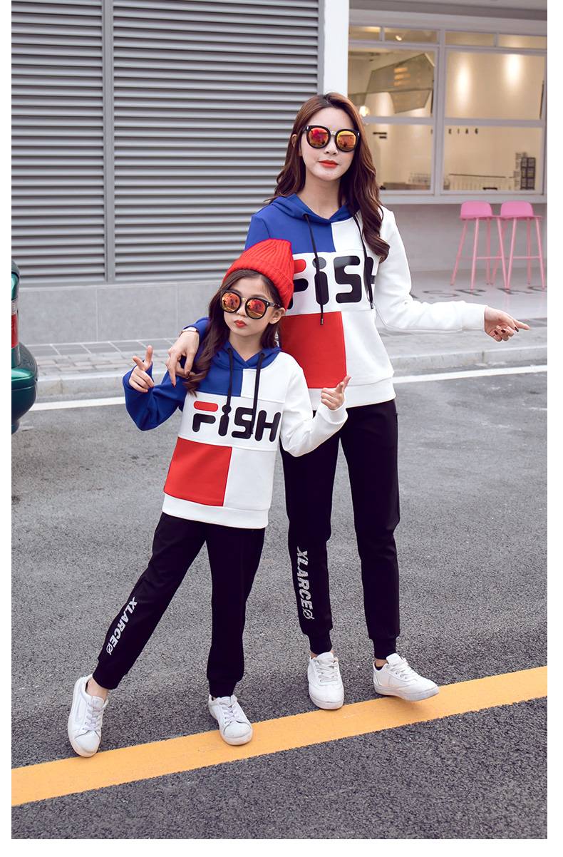 亲子装秋装2019新款潮一家三口装全家装母女装长袖运动套装班服春