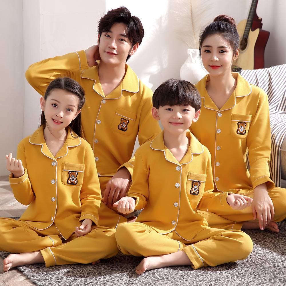 4套价 春秋亲子睡衣纯棉长袖开衫一家四口男孩女童母女父子父女家居服套装