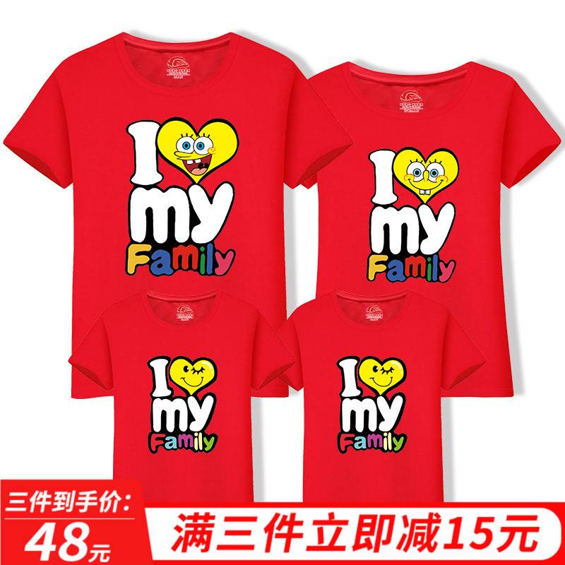 亲子装春装一家三口 全家庭套装夏装2019新款潮上衣母女装t恤短袖