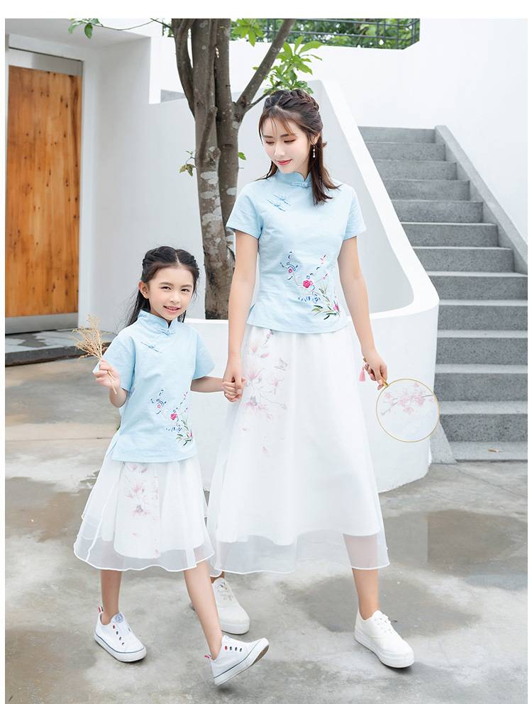 亲子装汉服夏装2019新款潮母女装休闲公主汉元素民族风女童装套装