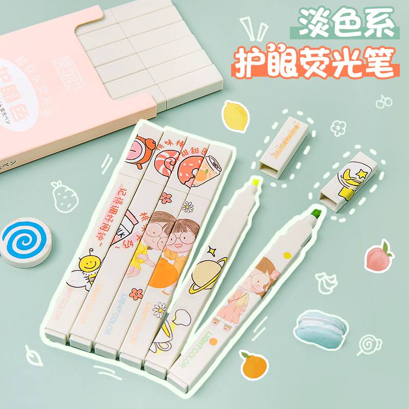 荧光笔一套淡色系做笔记学生用粗划重点标记笔彩色记号笔