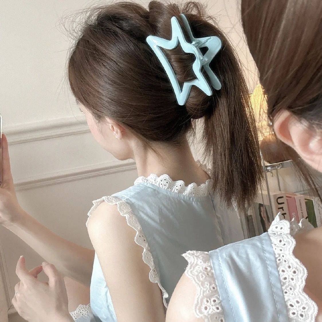 温柔少女海盐蓝星星抓夹后脑勺盘发鲨鱼夹2024春夏新款清新发饰