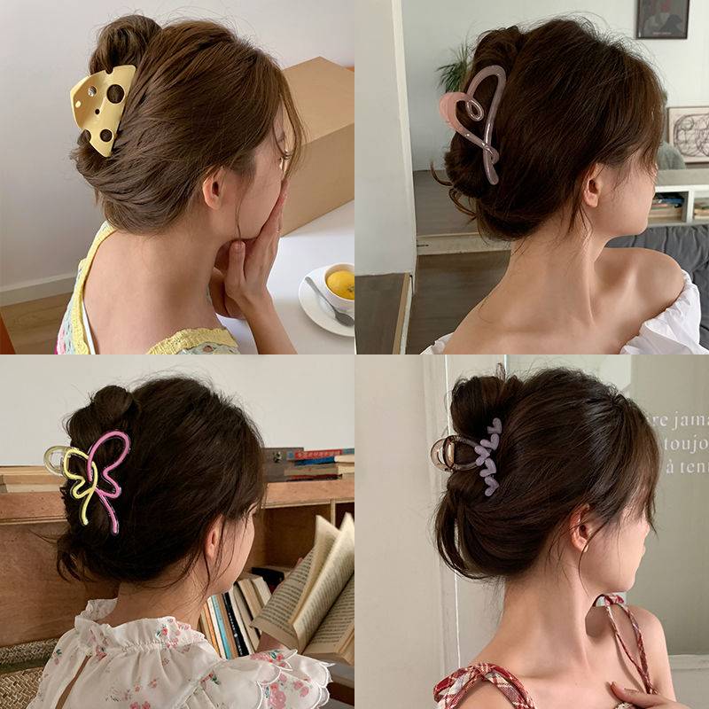芝士奶酪抓夹女2024新款可爱鲨鱼夹小号发量少半扎发发夹女后脑勺