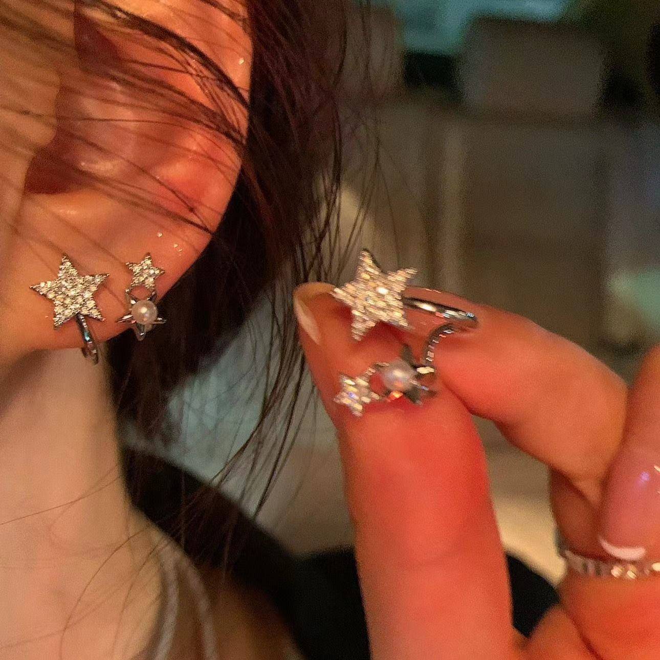 S925银耳钉s925银针珍珠星星小众设计高级感耳饰