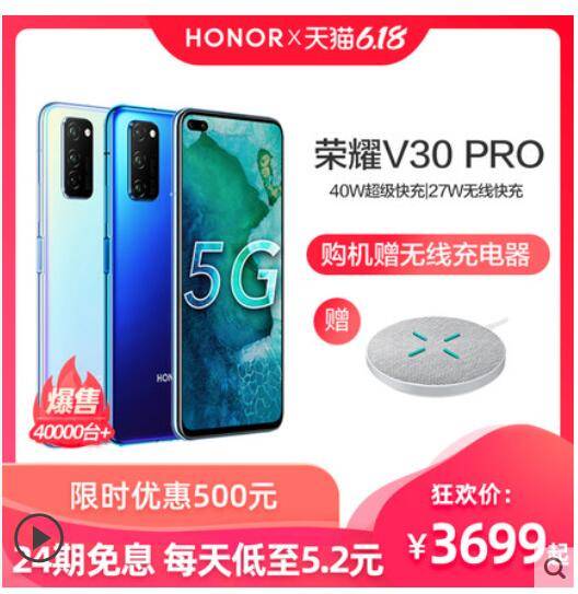 华为旗下荣耀V30 PRO手机新品双模麒麟990 5GSOC芯片相机矩阵正品