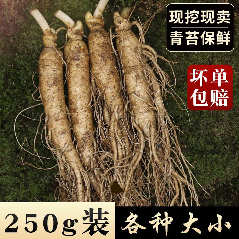 泓品堂 长白山新鲜人参250g 多种规格带土鲜人参 吉林生晒白人参