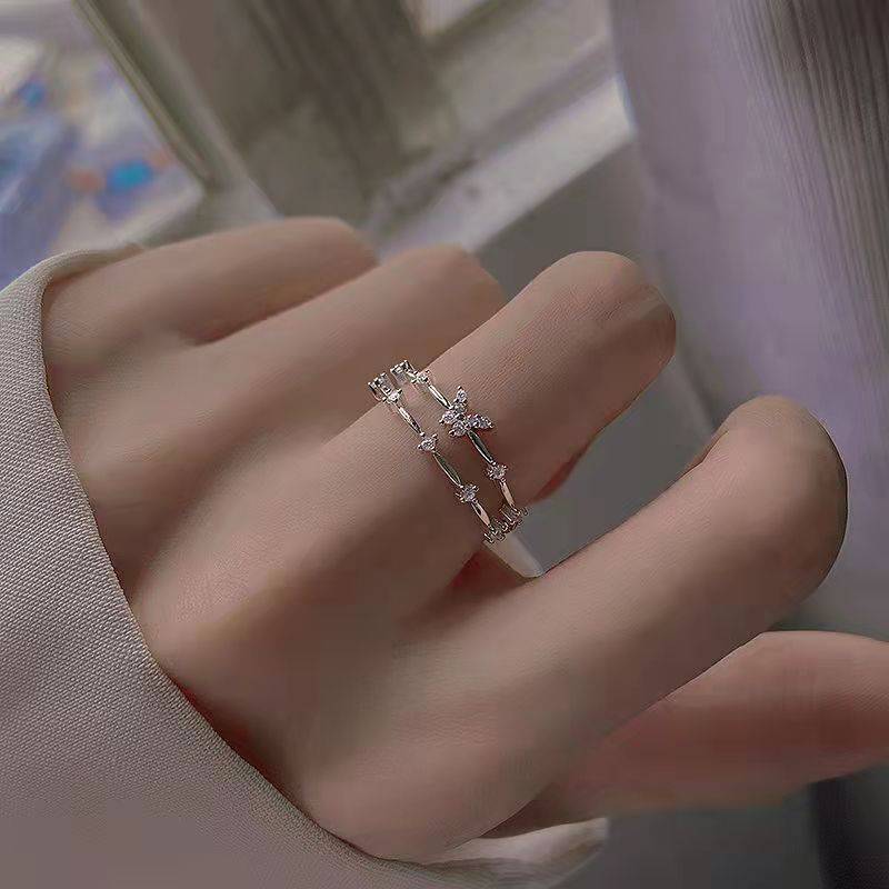 全国包邮买一送一925镀银戒指女双层设计小钻蝴蝶流行甜美手饰韩版小清新指环新款