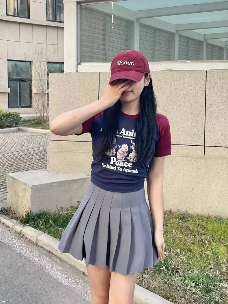 逃离地球美式街头辣妹撞色插肩袖短袖T恤女夏正肩短款体恤衫上衣