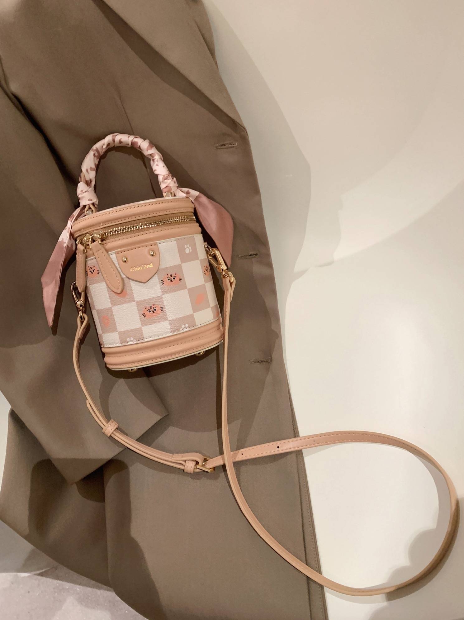 Chio2nd 虎虎生威小众手提水桶包包女2022新款高级质感单肩斜挎包