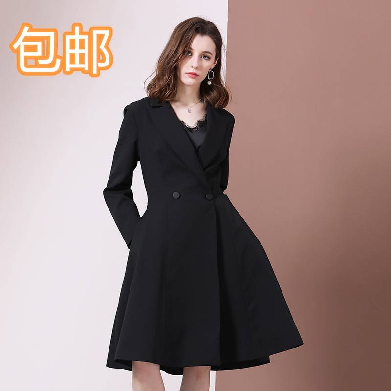 2019秋装新款高端女装外套欧美大牌时尚大气双排扣风衣女中长款
